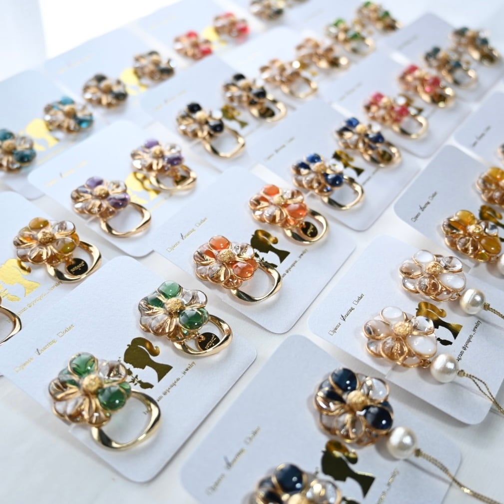 オーダー会は+¥1000 となります。 ┈┈┈┈┈┈┈┈┈┈ mini blossomの小さいサイズが欲しい!という ご要望にお応えして 直径1.7cmのpetit blossomが仲間入りしました。 ⚠️ネジバネイヤリングをご希望のお客さまへ フープの位置が蝶バネイヤリングに比べると 少し下がってしまうのですが、 それでもよろしければ対応させて頂きます。 お色は毎回調合しているためその時により濃淡の誤差がございます。 予めご了承頂いてからのご購入をお願い致します。色見本と全く同じ色味をご希望されるお客さまは ご購入をお控えください。 ワインレッドは+¥500 ベージュ、アイスブルーは+¥300となります。 ロットによってフープの大きさにバラつきがあるためその時々によりデザインの見え方が多少異なります。(画像参照) 左右の大きさは出来るだけ揃えてお届けいたしますがあらかじめご了承くださいませ。 完売の場合でも定期的に再販しております。 詳細はInstagramをフォローしてお待ちください。 @ponpon_jewelry https://www.instagram.com/ponpon_jewelry/ ✎︎____________ こちらの商品はお花がベースとなり、 追加オプションとして フープとロングチャームをお選び頂けます。 追加オプションは取り外しが可能な仕様となっておりますので、様々なアレンジをお楽しみ頂けます。 お花のみ→ロゴプレートなし フープ→2way仕様(フープとロゴプレートが取り外し可能) ロングチャーム→3way(写真参照) ピアスでフープを追加選択された場合、フープとロゴプレートは一緒に外れる仕様となります。 ✎︎____________ この度オリジナルフレームを作成し 当店のみの完全オリジナルの商品へと 生まれ変わりました。 リニューアル前と作り方を大幅に変え 花びらをぷっくりさせる作業工程も追加し さらに可愛くなりました。 よく見ないと分からない程度かなとは思いますが 細かな気泡が入っております。 また、ハンドメイドのため埃が入ることもございます。 スムーズに発送させて頂くため、 完成後のお写真はお送り致しません。 ご理解の程よろしくお願いいたします。 発送予定日は目安です。 お急ぎのお客様は お急ぎ便(+¥500)のご検討をお願いいたします。 (備考欄に使いたいお日にち書いて頂けますと確実です) 【サイズ】 お花のみ 直径1.7cm(ロゴプレートなし) お花+フープ 縦2.8cm〜3cm 横1.7cm お花+ロングチャーム 縦5cm〜5.5cm 横1.7cm