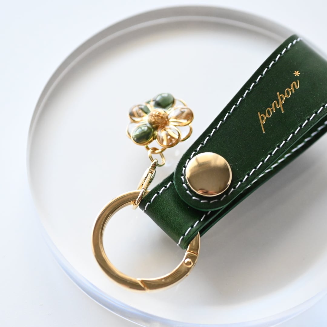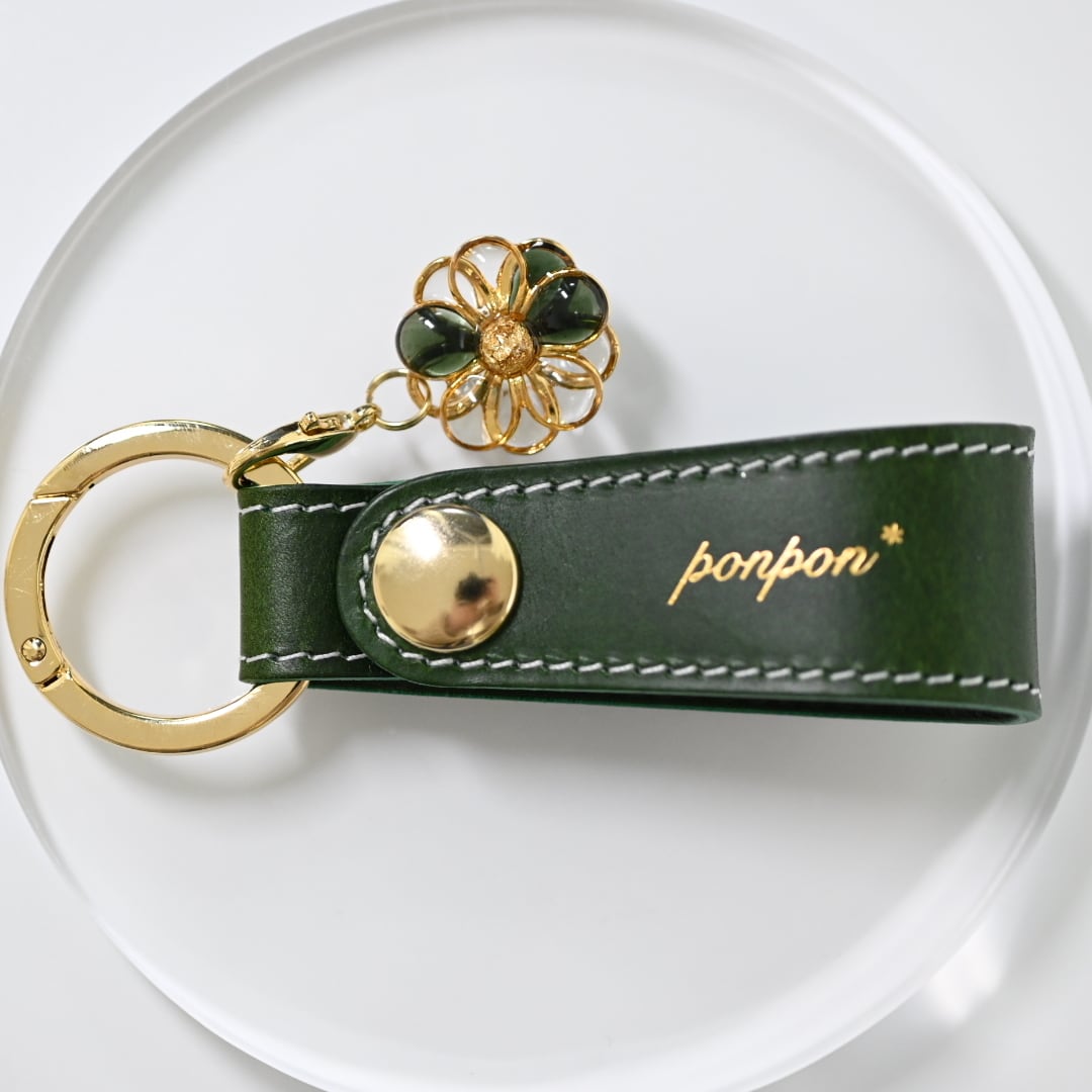 ponpon*オリジナル刻印入り、本革レザーキーホルダーです。
