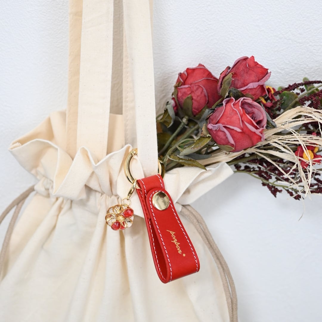 ponpon*オリジナル刻印入り、本革レザーキーホルダーです。