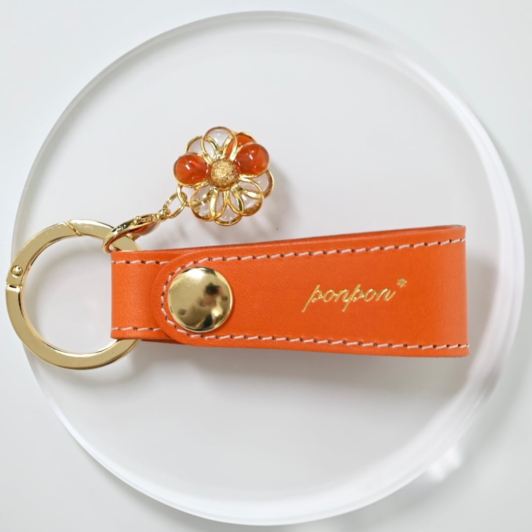 ponpon*オリジナル刻印入り、本革レザーキーホルダーです。