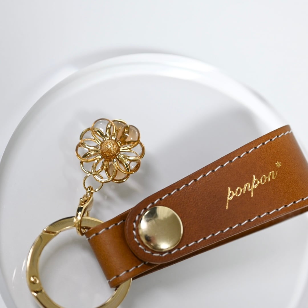 ponpon*オリジナル刻印入り、本革レザーキーホルダーです。
