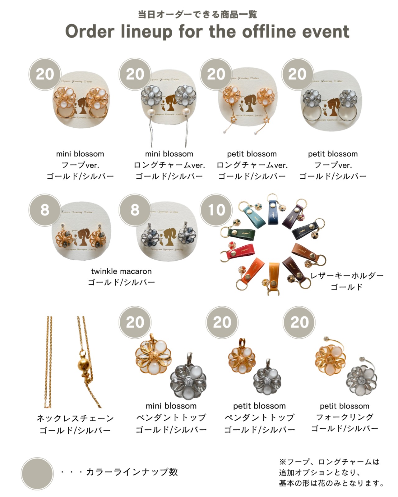 ※フープ・ロングチャームは追加オプションです。基本の形は花のみとなります。