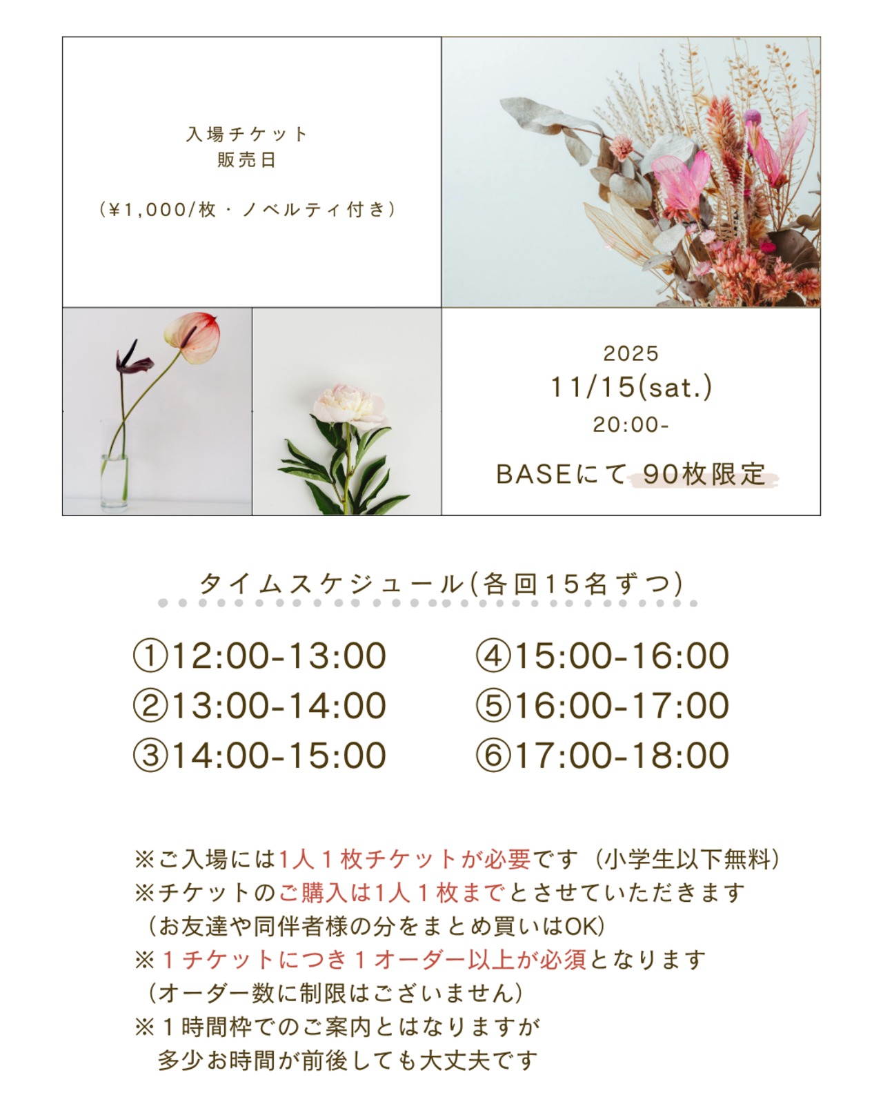・混雑を避けるため、入場時間の前後は少し余裕をもってお越しください。