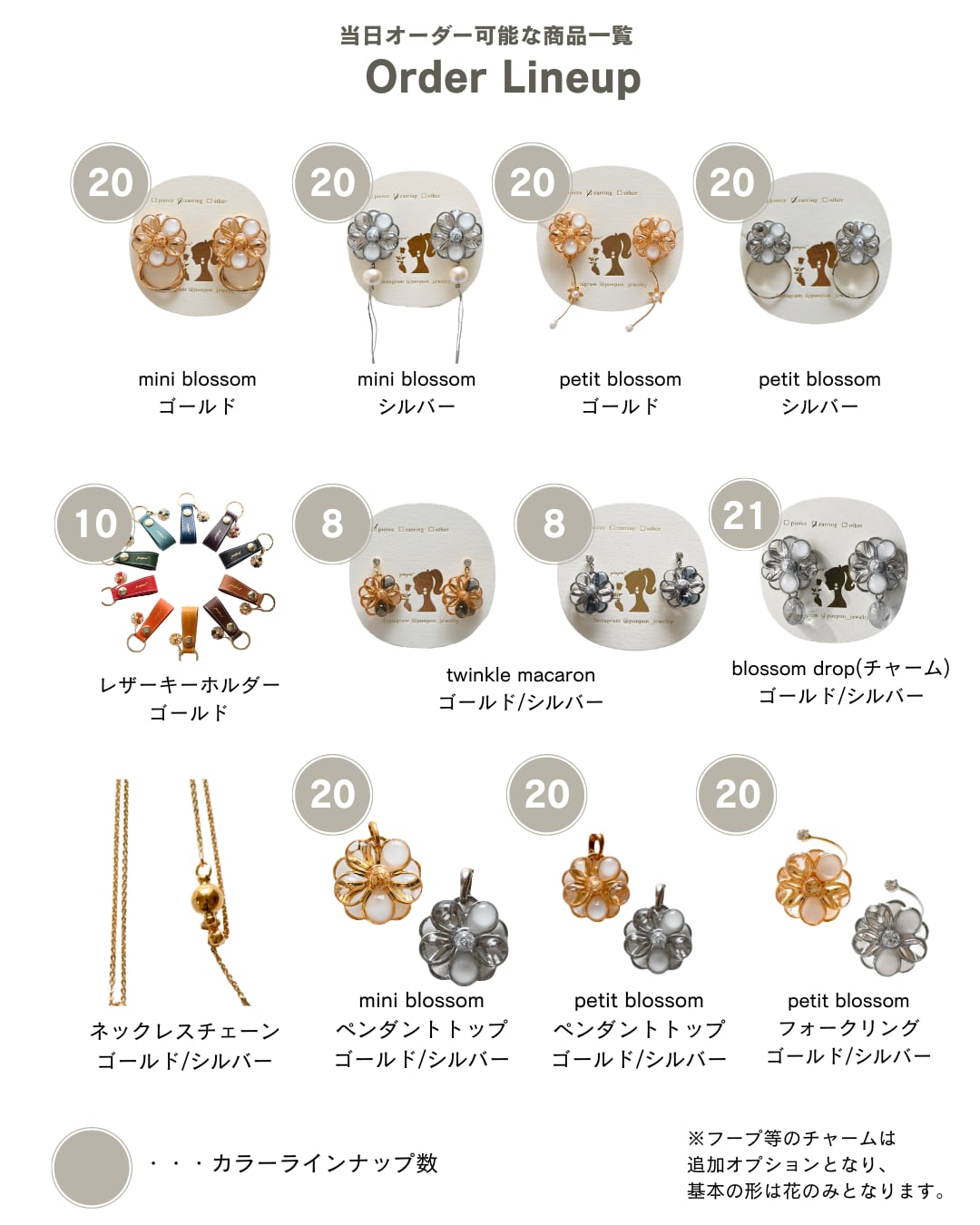 ・blossomシリーズは展示・オーダーのみ(当日お持ち帰り不可)