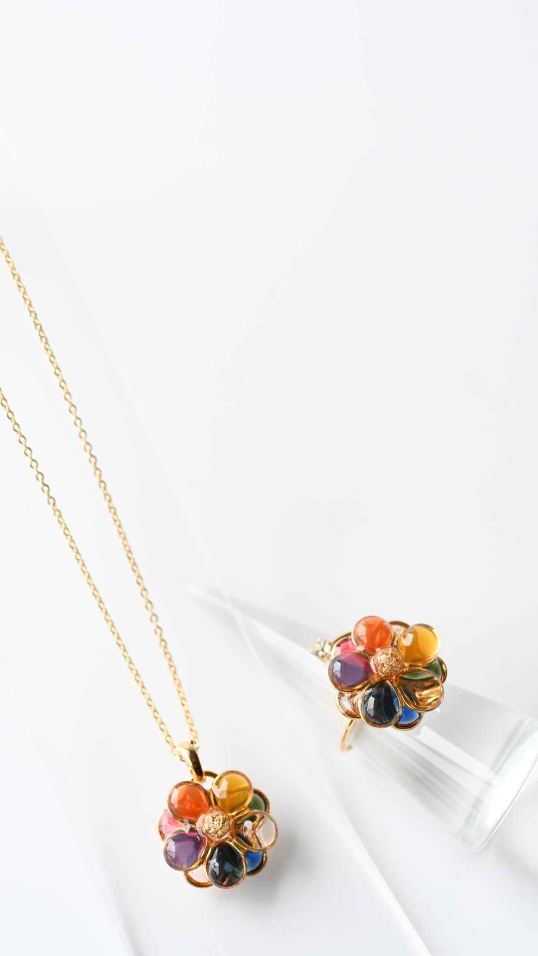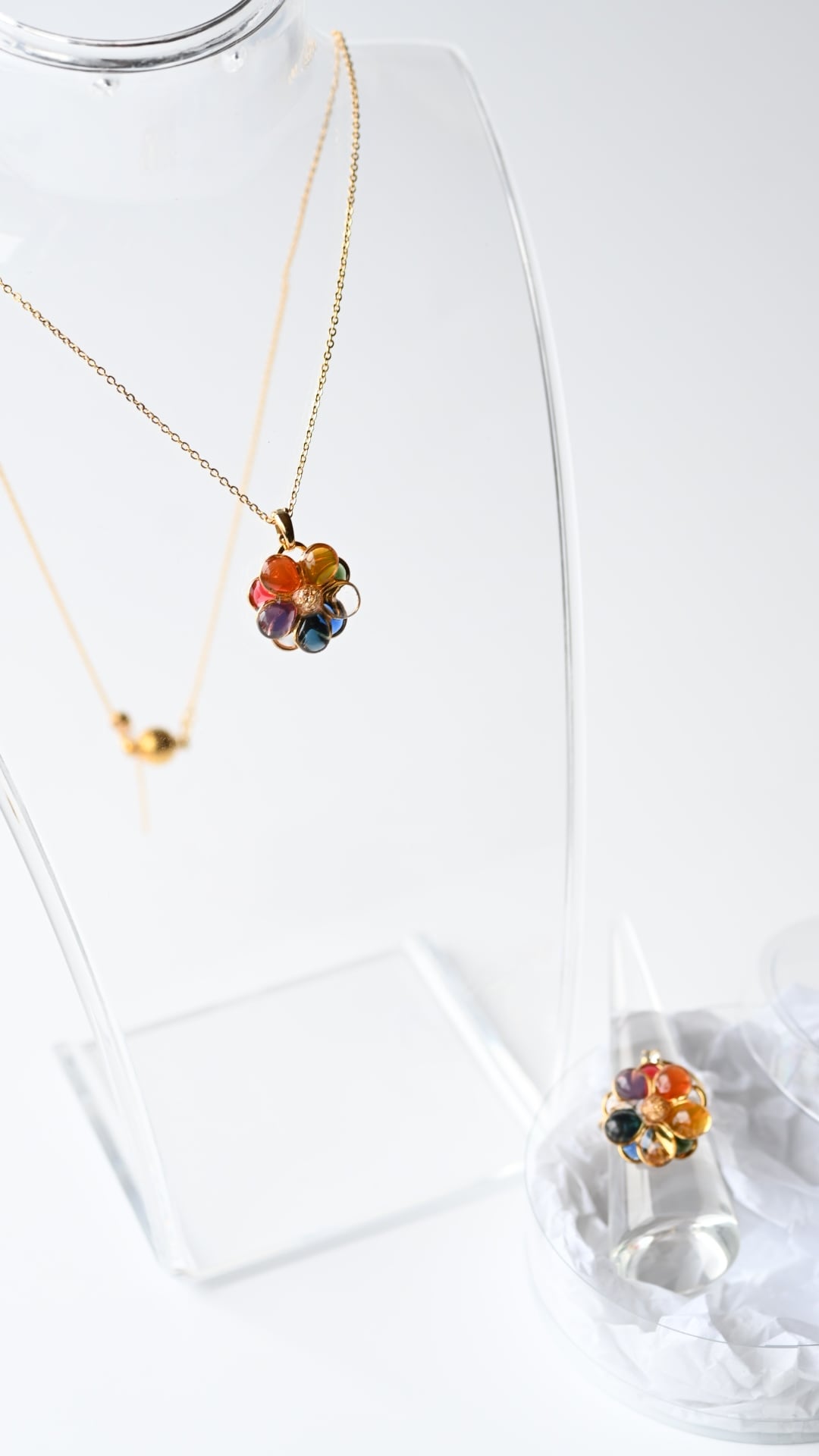 【7周年記念品】10点限定 レインボーネックレス&リングのセット