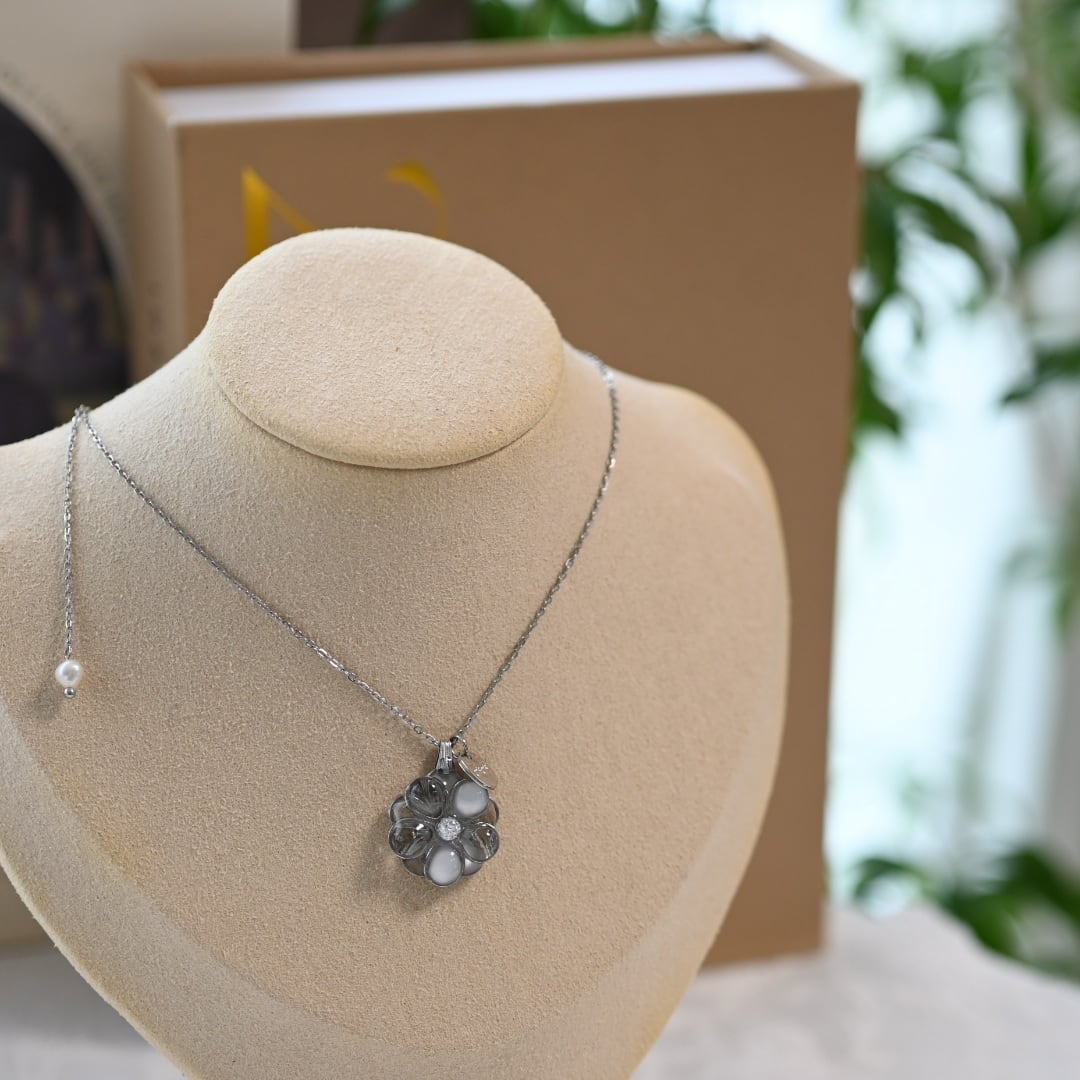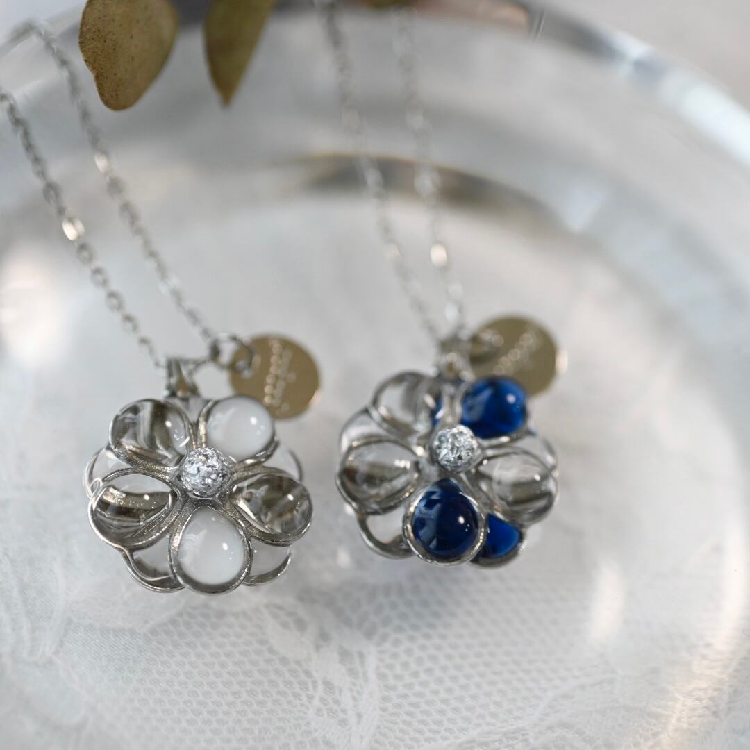 ひとつひとつ手作りしている小さな花の形や、チェーンの繊細なデザインが、女性らしさを引き立たせます。 普段使いにも、特別な日にも、